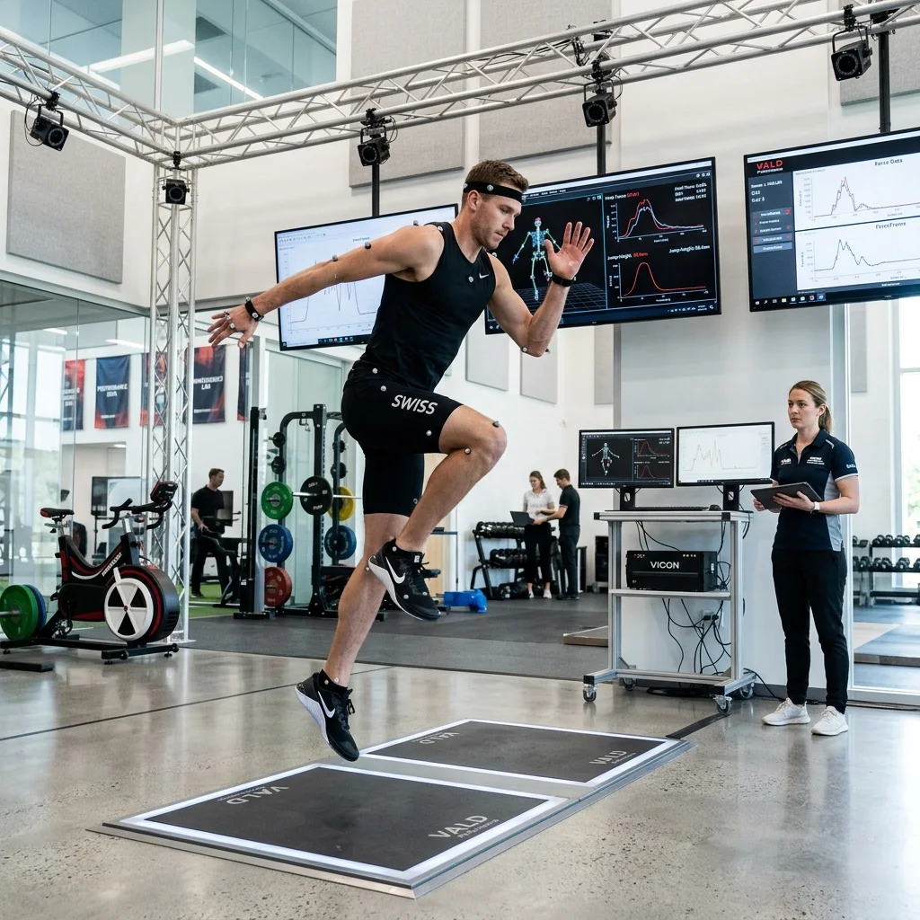 ForceDecks and DynaMo biomechanical analytics used for return-to-sport clearance, asymmetry detection, and objective rehabilitation tracking.